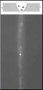 در فرایند TIG، دست زدن به الکترود جوش ممکن است سبب انتقال ذرات تنگستن به فلز جوش شود. این ترکیبات توسط اشعه ایکس تشخیص داده شده و به عنوان ذرات روشن به نظر میرسند، چرا که آنها بسیار متراکم تر از فولاد میباشند.