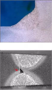 اولین ماکروگرافی زیر یک قطعه جوش خورده با پرکننده قابل قبول را با نفوذ فلز کافی پایه نشان می دهد. مایکروگرافی دوم عدم نفوذ به ریشه در یک اتصال دو جوش نشان داده شده، و سومین تصویر نشان دهنده عدم نفوذ به یکی از اعضای اتصال است. تصویر نهایی طرح دیگری از تغییرات نفوذ ریشه ناقص و ظاهر آن در یک فیلم رادیوگرافی (رادیوگرافی) را نشان می دهد.