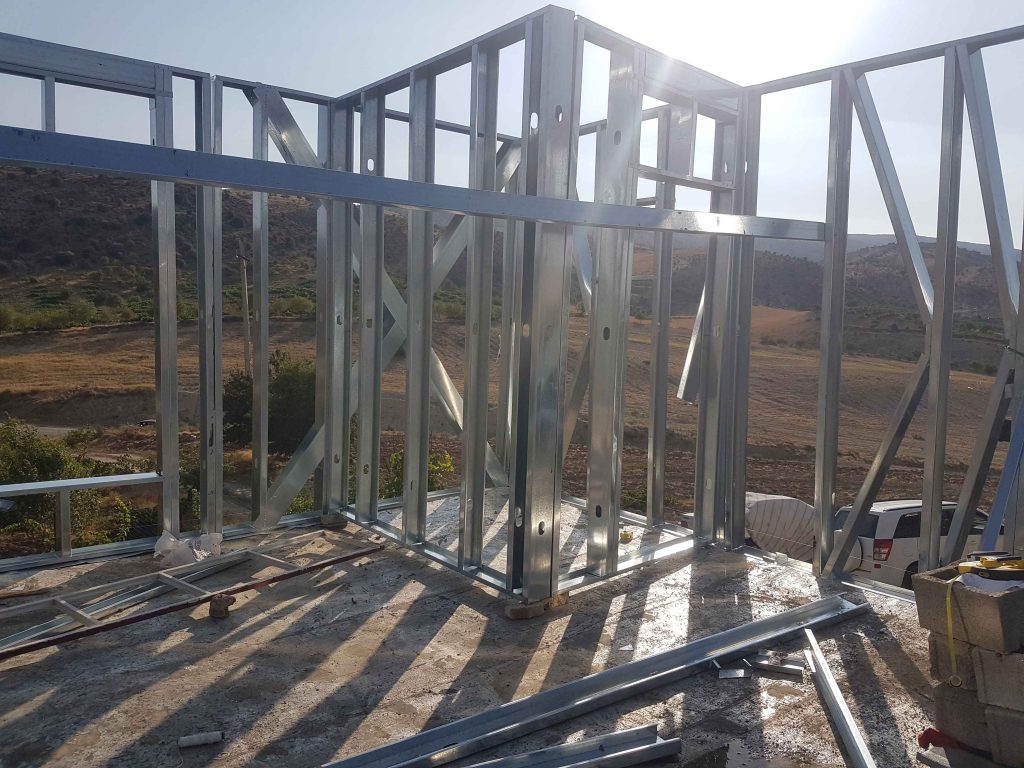 به منظور اتصال سازه به پی ، از کلاف های افقی با مقطع c، استفاده میگردد. از آنجایی که وزن سازه نسبت به سایر سیستم های ساختمانی بسیار کمتر میباشد( حدود ۲۵ الی ۴۰ کیلوگرم بر متر مربع) لذا برای نصب دیوارها به فونداسیون با عمق کم نیاز میباشد(معمولا ۵۰ سانتیمتر). سپس ، انکر بولتها را در فاصلههایی که از قبل مشخص شده است قرار میدهند تا با استفاده از آنها بتوان دیوارها را تثبیت کرد.